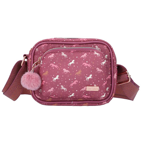 Taštička přes rameno Miss Melody, Vínová, se vzorem koní a hvězd