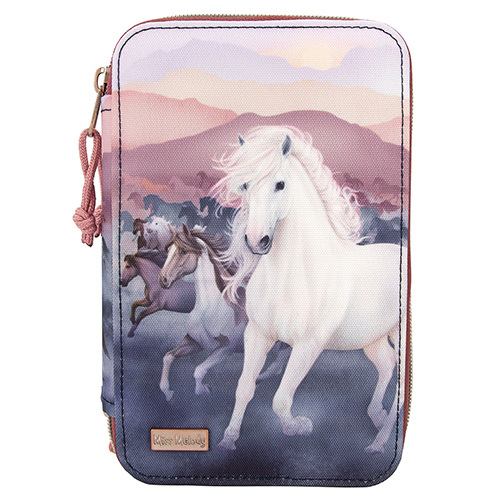 Penál s výbavou Miss Melody, Modro-vínový, třípatrový