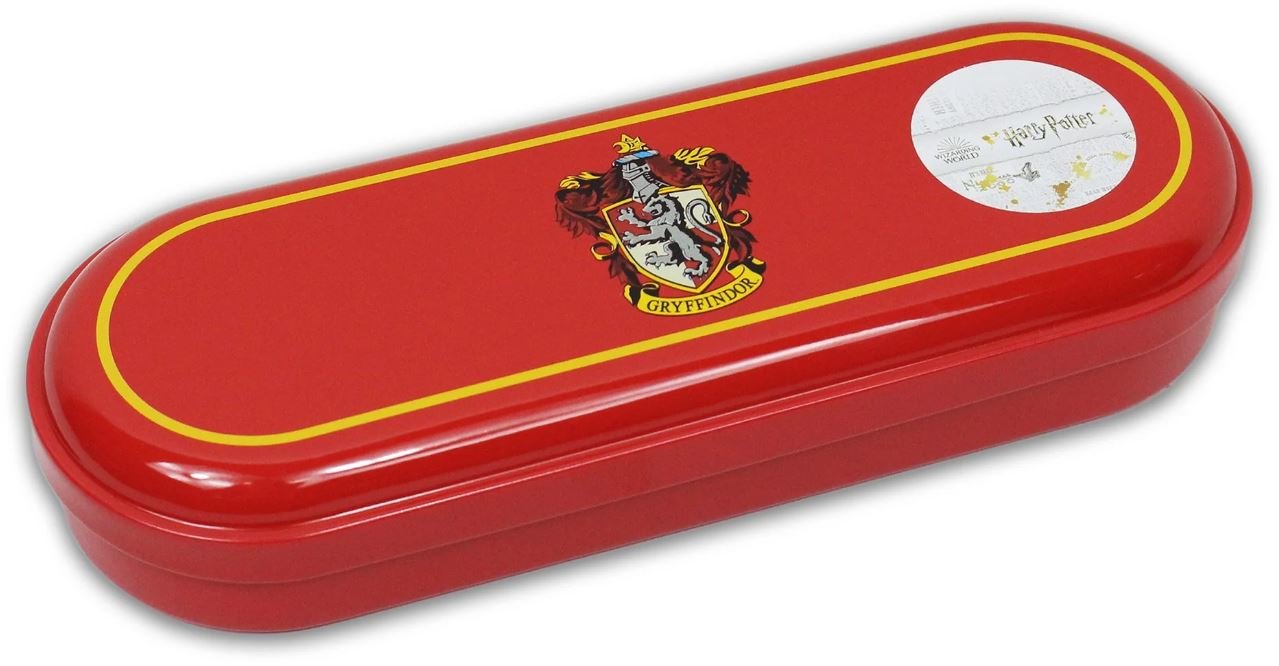 Cínový penál na tužky s motivem bradavické koleje Nebelvír.