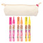 Zestaw zawiera beżowy materiałowy piórnik w modnym i praktycznym wzorze, który łatwo ozdobisz dołączonymi neonowymi flamastrami w różowym, żółtym i pomarańczowym kolorze. Dzięki temu Twój piórnik będzie nie tylko wyjątkowy, ale też zauważalny na pierwszy rzut oka. Idealny dla uczniów, studentów i kreatywnych dorosłych, którzy szukają prostego sposobu na personalizację swoich przyborów do pisania zgodnie z własnym stylem.
