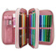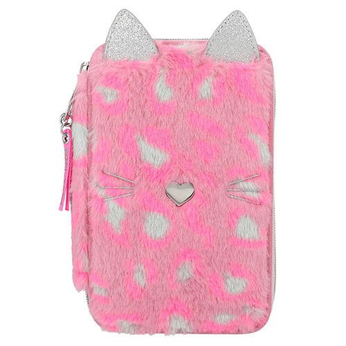 Penál s výbavou Top Model, Plyšová kočička, růžovo-stříbrný, třípatrový