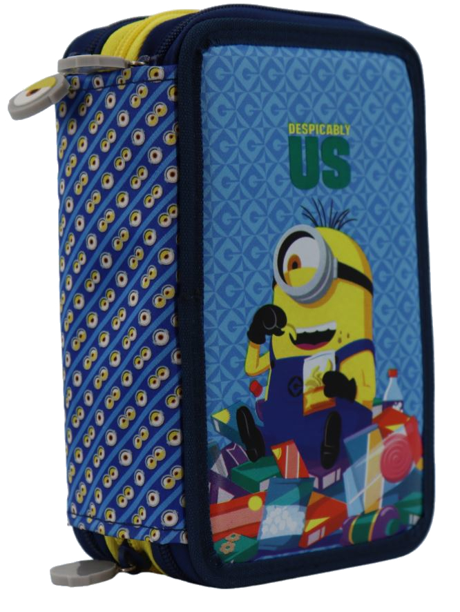 Oficiální produkt - pouzdro z katalogu zboží s licencí animovaného filmu Minions (Mimoni).Zboží je legálně licencováno a prodáváno se souhlasem vlastníků licenčních práv.Modré třípatrové školní pouzdo vyvedené v motivu animované postavičky Mimoně. Všechny patra mají zapínání na zip. Tento penál...