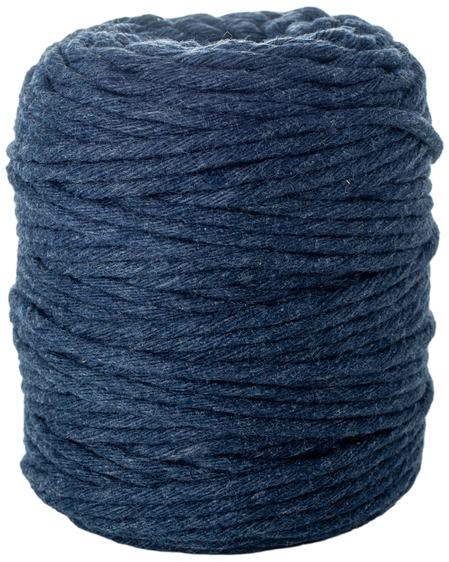 Sznurek bawełniany do makramy, kolor granatowy. Rozmiar: 5 mm (splot 21 nitek), długość 100m. . Sznurek idealnie nadaje się do tworzenia różnego rodzaju ozdób, takich jak: łapacze snów, gobeliny, dekoracje ścienne, zasłony, girlandy, koronki, obrusy, kwietniki, torby, siatki, naszyjniki, kolczyki, koraliki, bransoletki i wiele innych. . Wysoka jakość Pojedynczo skręcany
