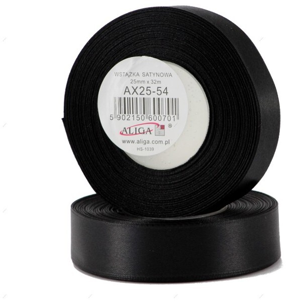 Wstążka satynowa czarna 25 mm 32 mb. AX25-54, Aliga
