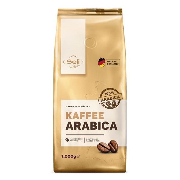 Prażona kawa ziarnista Seli - Arabica, wyselekcjonowane odmiany arabiki i ciemniejszy sposób palenia nadają kawie bogaty smak oraz delikatne karmelowe i owocowe nuty przy zachowaniu niskiej kwasowości; 100% Arabica; Waga: 1 000 g przeczytaj całość