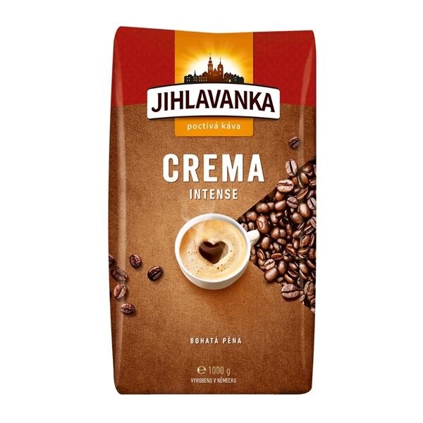 Jihlavanka Crema Intense to idealna mieszanka Arabiki i Robusty dla miłośników obfitej pianki i intensywnego smaku kawy; Dzięki średniemu stopniowi palenia ma zrównoważoną intensywność i przyjemny aromat; Ta doskonała kawa ziarnista jest idealna do przygotowania zarówno w ekspresie automatycznym, jak i w ekspresie kolbowym; Jihlavanka. Ślicznie pachnie.; Waga: 1 kg