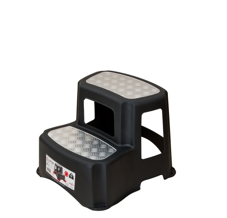 Stupátko 2 schody 90kg plast metalic 35x35-29cm - celé v černé barvě