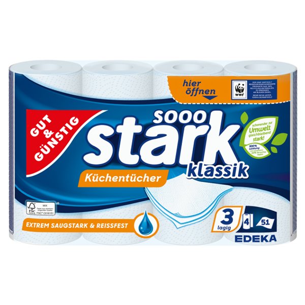 Extrémně savé kuchyňské utěrky, 3vrstvé baleno po 4ks rolíextrémně savé utěrky pro kuchyňské účely. Jedna role má 51 útržků, utěrky jsou 3 vrstvé, takže jsou velmi pevné a mají velmi dobrou savost. przeczytaj całość