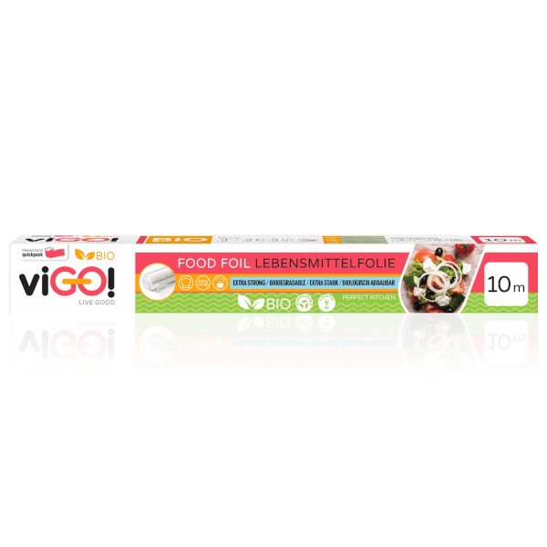 viGO! BIO potravinová fólie 10m - 100% kompostovatelnáBio potravinová fólie, která zaručí delší trvanlivost uchovávaných potravin. Vhodná na překrytí a uchování všech druhů potravin. Udržuje potraviny déle čerstvé.Bio fólie je 100% kompostovatelná. Ekologicky rozložitelný výrobek. Vyrobeno ze...
