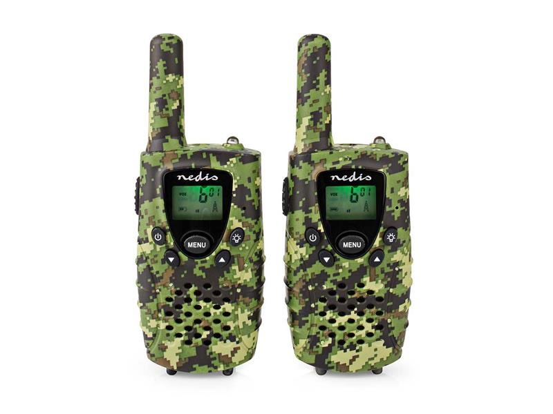 Vydejte se na dobrodružství s touto lehkou Nedis sadou vysílaček s maskovacím vzorem. V přepravním pouzdru naleznete vše, co potřebujete, jako jsou 2 náhlavní sady PTT (Stisknout a mluvit), baterie a 2 nabíjecí kabely.