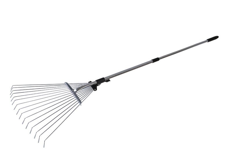 Szwedzkie grabie z metalowym klipsem - blokadą, regulowany rozstaw listew, teleskopowa rączka, zastosowanie: do grabienia liści i trawy. przeczytaj całość