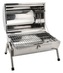 Nowoczesny przenośny grill DOUBLE o atrakcyjnym chromowanym wyglądzie. Konstrukcja wykonana jest z wysokiej jakości blachy ze stali nierdzewnej o polerowanej powierzchni. Drewniany uchwyt zapewnia wygodne przenoszenie urządzenia. Stabilność zapewniają cztery metalowe nogi przykręcone do korpusu grilla. Pokrywę grilla w pozycji otwartej można zabezpieczyć za pomocą metalowego haczyka. Grill można używać jako standardowy grill lub rozłożyć go i używać z dwiema powierzchniami do grillowania. Do samego przygotowywania potraw grill wyposażony jest w 2x ruszty ze stali chromowanej.
