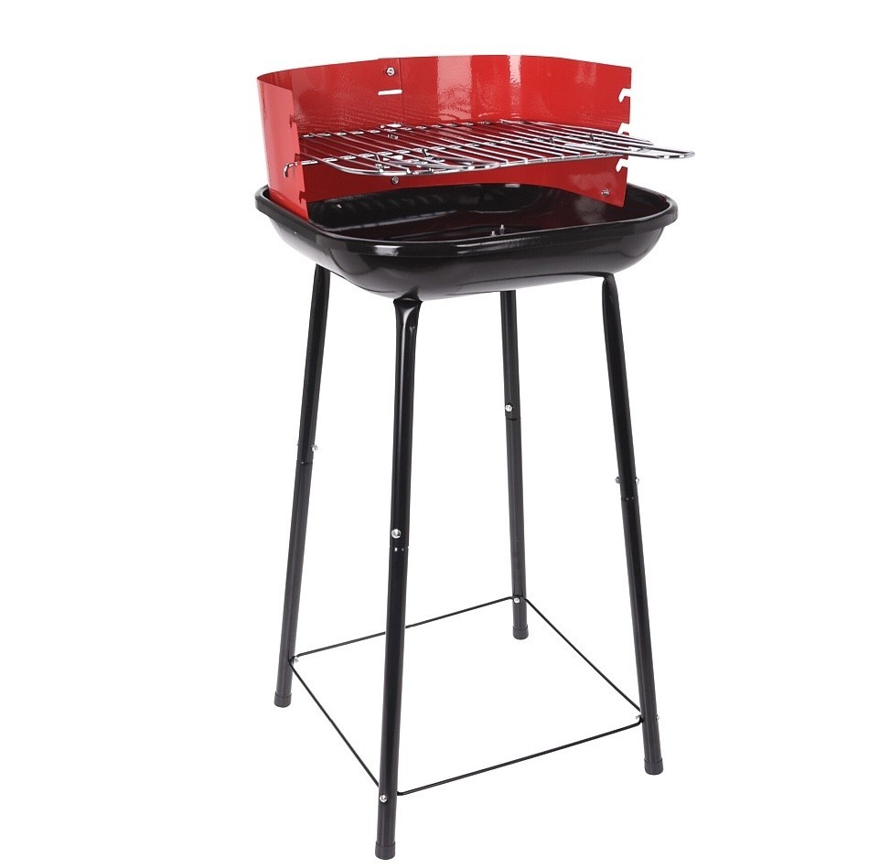 materiál: kov / chrom / smaltsmaltovaná nádoba na dřevěné uhlíchromovaný rošt s odnímatelnými rukojeťmi pro jednoduší manipulacipůlkruhový ochranný štít jako ochrana proti větruvýškově nastavitelný rošt do 4 různých polohstabilní konstrukce na 4 nohách, gril se nekymácí ani nepřevracírozměry... przeczytaj całość