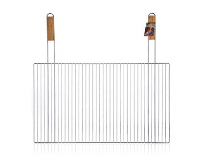 Prostokątny ruszt do grilla BBQ z drewnianymi uchwytami o wymiarach 68 x 40 cm przyda się do łatwego grillowania mięsa, warzyw itp., nadaje się także do murowanych grillów ogrodowych. Ruszt wykonany jest z chromowanej stali, liczba prętów na ruszcie wynosi 40 sztuk. przeczytaj całość