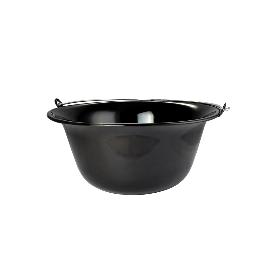 Smaltovaný klasický tábornický kotlík s černým povrchem. Kotlík na guláš musí mít každý, kdo si chce vychutnat pravou chuť kotlíkového guláše, ať už se jedná o trampy či gurmány. Průměr 40 cm, výška 19 cm, objem 14 litrů. Vyrobeno v EU. Kotlík se nad ohniště zavěšuje pomocí trojnožky na kotlík....