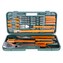 Nerezová sada s dřevěnou rukojetí v plastovém kufříku obsahuje: čístící drátěný kartáč 29 cm, grilovací zubaté kleště 34 cm, obracečka 41 cm, porcovací nůž s čepelí o délce 44 cm, vidlička se 3 hroty 40,5 cm, 4 grilovací jehlice 40,5 cm, 8 napichovátek 6,5 cm a štětec 46 cm. Sada obsahuje...