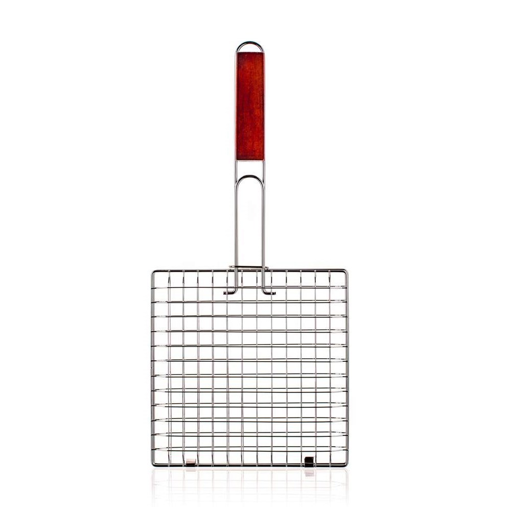 Grilovací rošt hranatý s dřevěnou rukojetí o rozměrech 22 x 22 cm využijete pro snadné grilování masa. Rošt je vyroben z pochromované oceli. przeczytaj całość