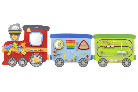 Dřevěná nástěnná hra vláček s vagonky.Obsahuje spoustu herních prvků pro rozvoj dětské motoriky. Rozměry balení cca 77x68x24 cm. Rozměry výrobku 190x67x7 cm. Věk 18m+ przeczytaj całość