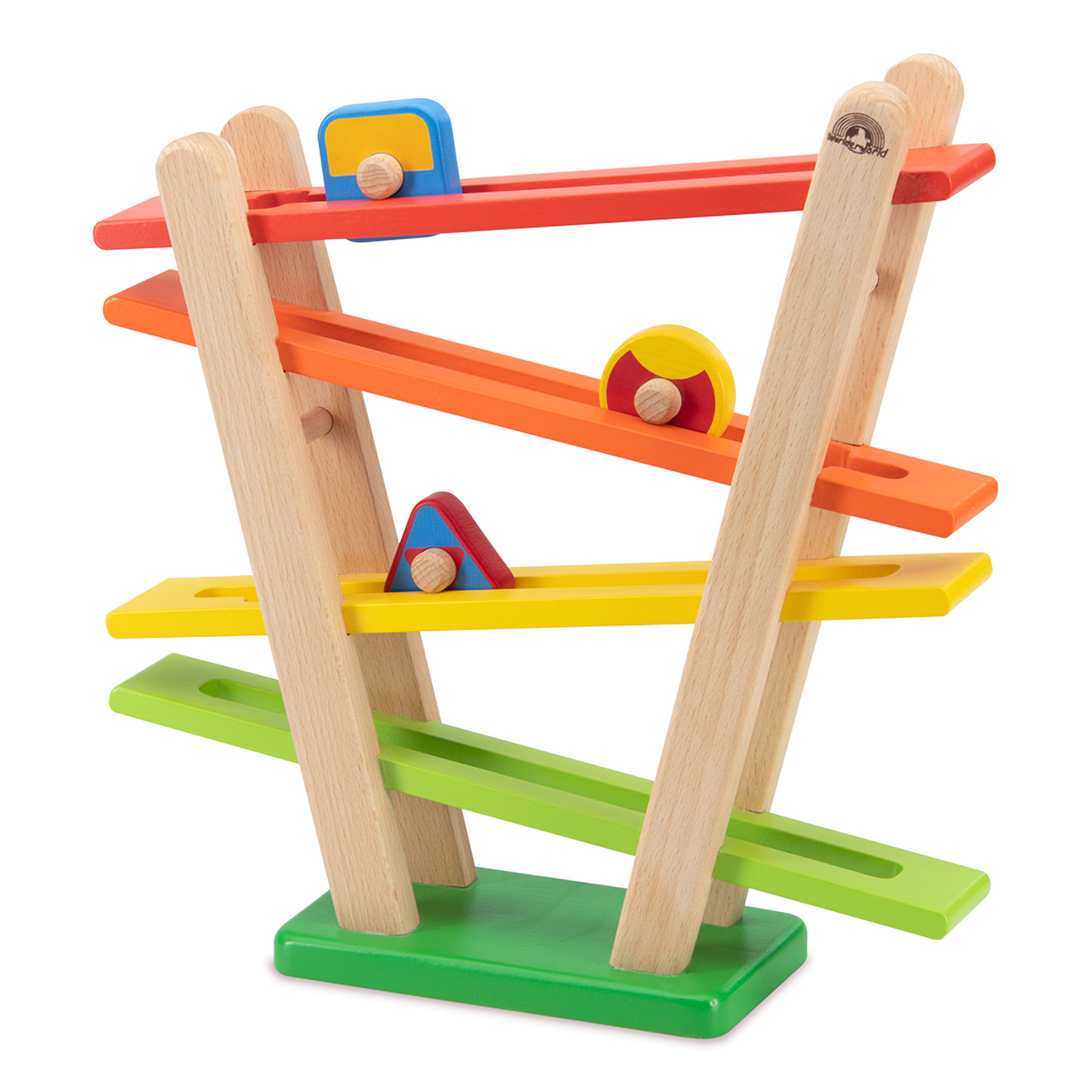 Duhová dráha děti jistě potěší. Postavte na dráhu čtverec, trojúhelník nebo kolečko a ty se budou kutálet dolů po dráze. Při rychlém pohybu dílků se jejich vzory mihotají před očima, což upoutá pozornost dětí. Baleno v kartónové krabici. przeczytaj całość