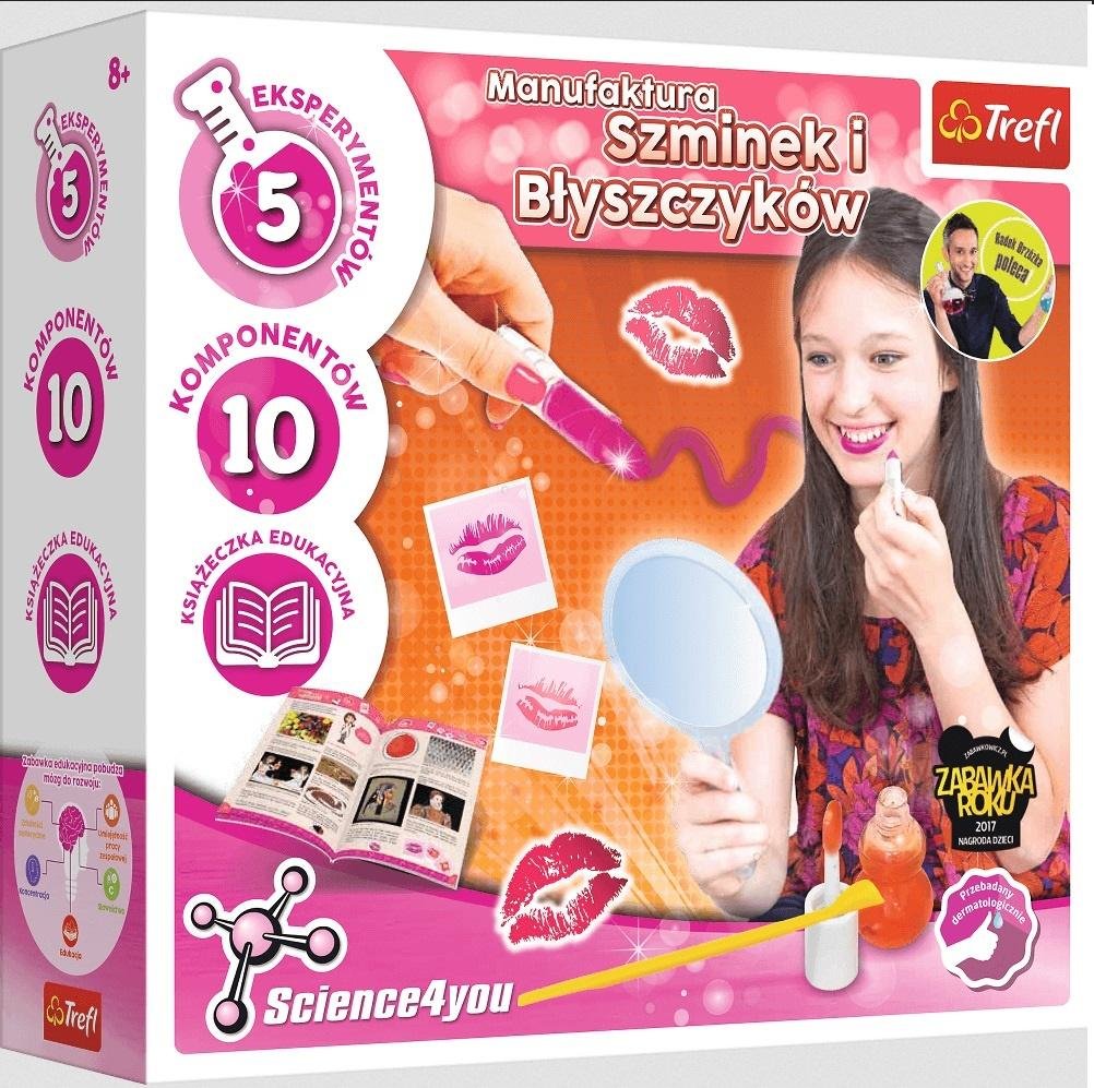 Zestaw Manufatura szminek i błyszczyków od Science4You zawiera 5 eksperymentów. Dowiedz się czym są zmysły, jaka jest podstawowa paleta kolorów i czym są stany skupienia. Te wszystkie elementy składają się na powstawanie szminek i błyszczyków! Poznaj historię powstania szminek. Stwórz własne kolorowe i pachnące szminki oraz błyszczyki. Do wykonania 5 eksperymentów.