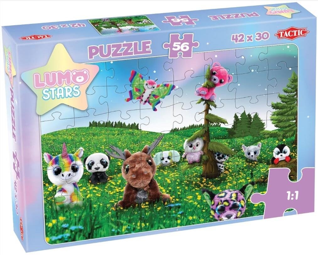 Puzzle przedstawiające pluszaki Lumo Stars 56 elementów.Rozmiar po ułożeniu 42x30 cm. przeczytaj całość