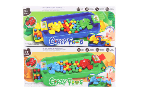 Společenská hra pro 2 hráče. Úkolem je pochytat co nejvíce kuliček pomocí žáby. Materiál plast. Baleno v krabici. Rozměry balení cca 31x14x7 cm. Věk 3+ przeczytaj całość
