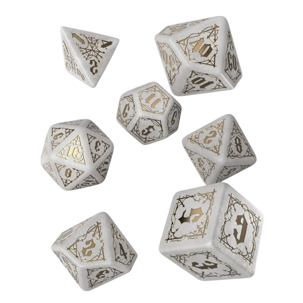 Jsi připraven vstoupit do temnoty a pohltit duše se sadou kostek, které jsou nesmrtelné! Tyto bílé kostky poseté jemnými třpytkami zachycují elegantní lesk – jako by v sobě nesly duši starodávného upíra. Vhodná pro temné fantasy kampaně, příběhy plné upírů a mystiky. Sada obsahuje k4, k6, k8,...