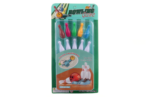 Mini gra towarzyska - kręgle. W opakowaniu znajduje się 10 kręgli, 3 kulki i wyrzutnia. Pakowane na karcie. Wymiary opakowania 13x26x3 cm. Materiał: plastik. Wiek 3+ przeczytaj całość