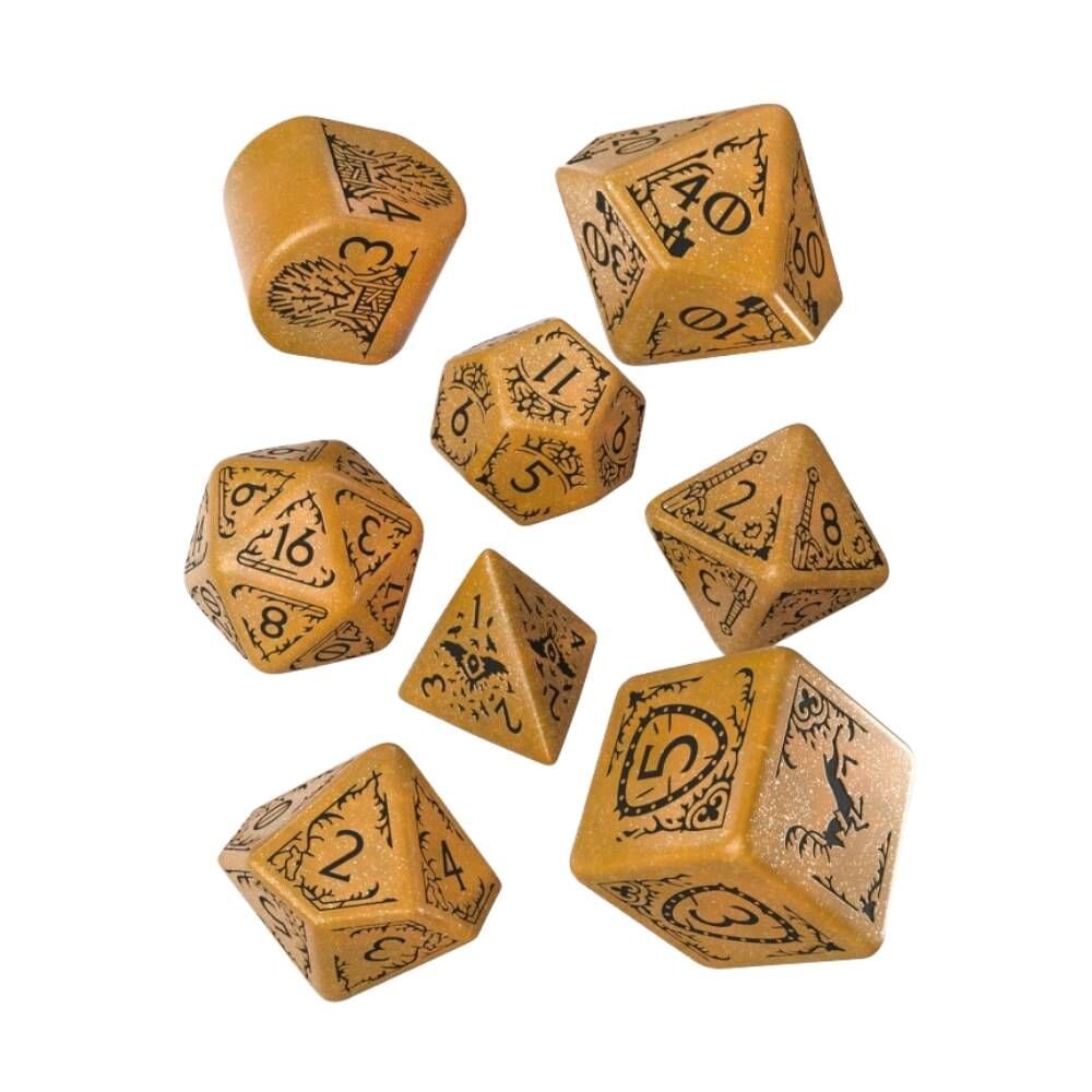 Tahle oficiálně licencovaná sada kostek ti přináší sílu bouře přímo do dlaně. Symbol jelena, motivy blesků a heslo rodu Baratheon dělají z každé kostky učiněný poklad! Temné a třpytivě zlaté kostky s kontrastním černým rytím působí jako ze zbrojnice krále Roberta. Vybojuj si nárok na tuto originální sadu. Uvnitř najdeš kompletní sadu 7 kostek (k4, k6, k8, k10, k%, k12 a k20)