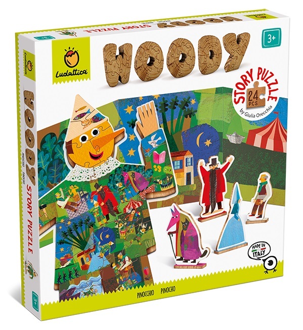 LUDATTICA Pinocchio dřevěné puzzle s příběhem, 24 dílků