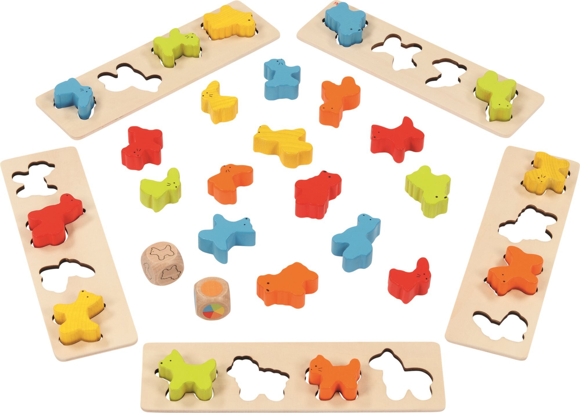 - Celem jest prawidłowe umieszczenie zwierzątek w wyciętych otworach zgodnie z kształtem i kolorem