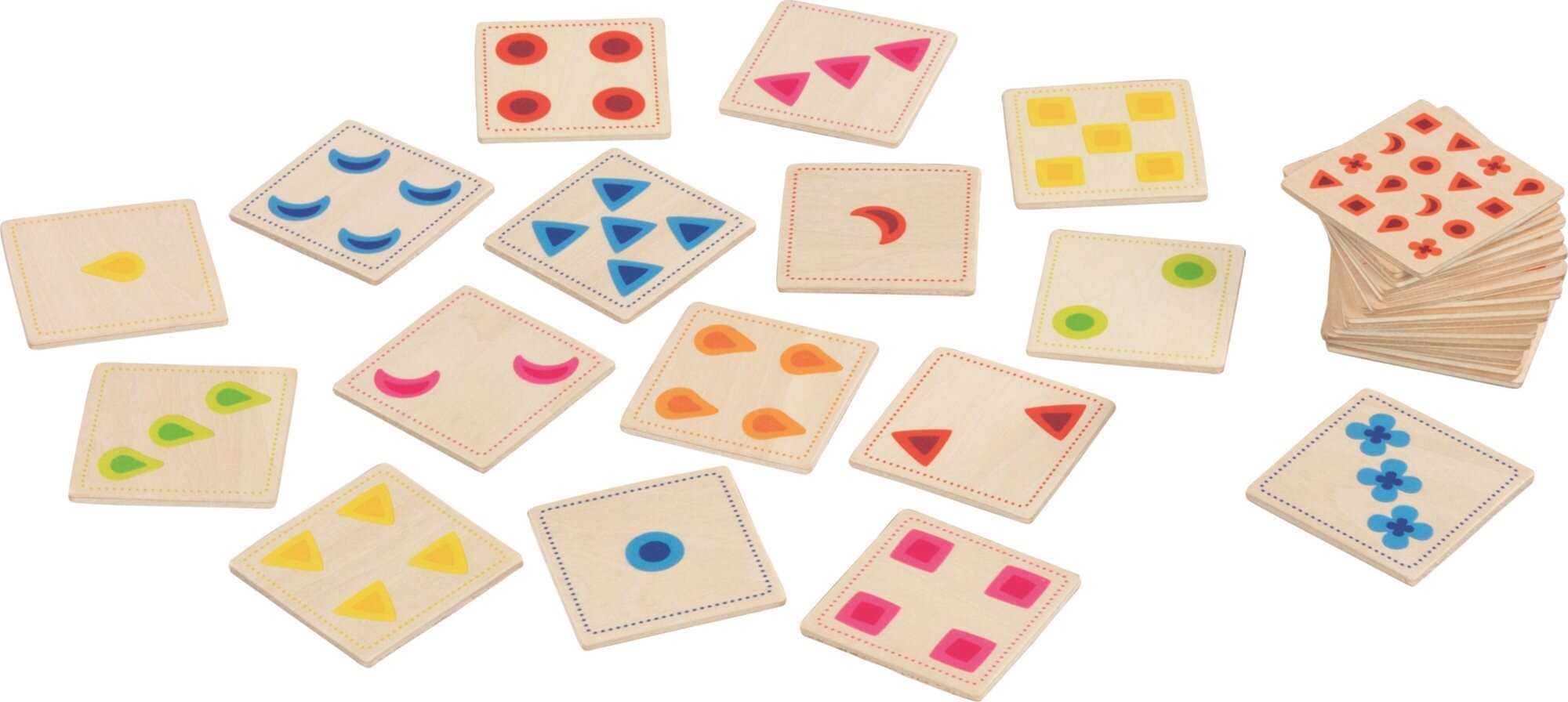 Akční hra Barvy a tvary je rychlá a svižná hra pro dva a více hráčů, která vyžaduje rychlý postřeh a rychlé reakce. Všechny dřevěné destičky zamíchejte, rozdělte na dvě stejné hromádky. Jednu dejte hřbetem nahoru, ostatní rozložte po stole obrázkem nahoru. Začíná nejmladší hráč, který se musí...