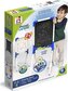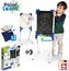 Oboustranná tabule 2v1:   Jedna strana je  bílá pro psaní stíratelným fixem  a druhá  černá pro klasické křídy .  Balení obsahuje krabičku s 10 křídami, 1 vymazatelnou černou fixu a mazací hadřík.  Polička pod tabulí slouží jako odkládací plocha pro kreslící pomůcky a zároveň zachycuje...