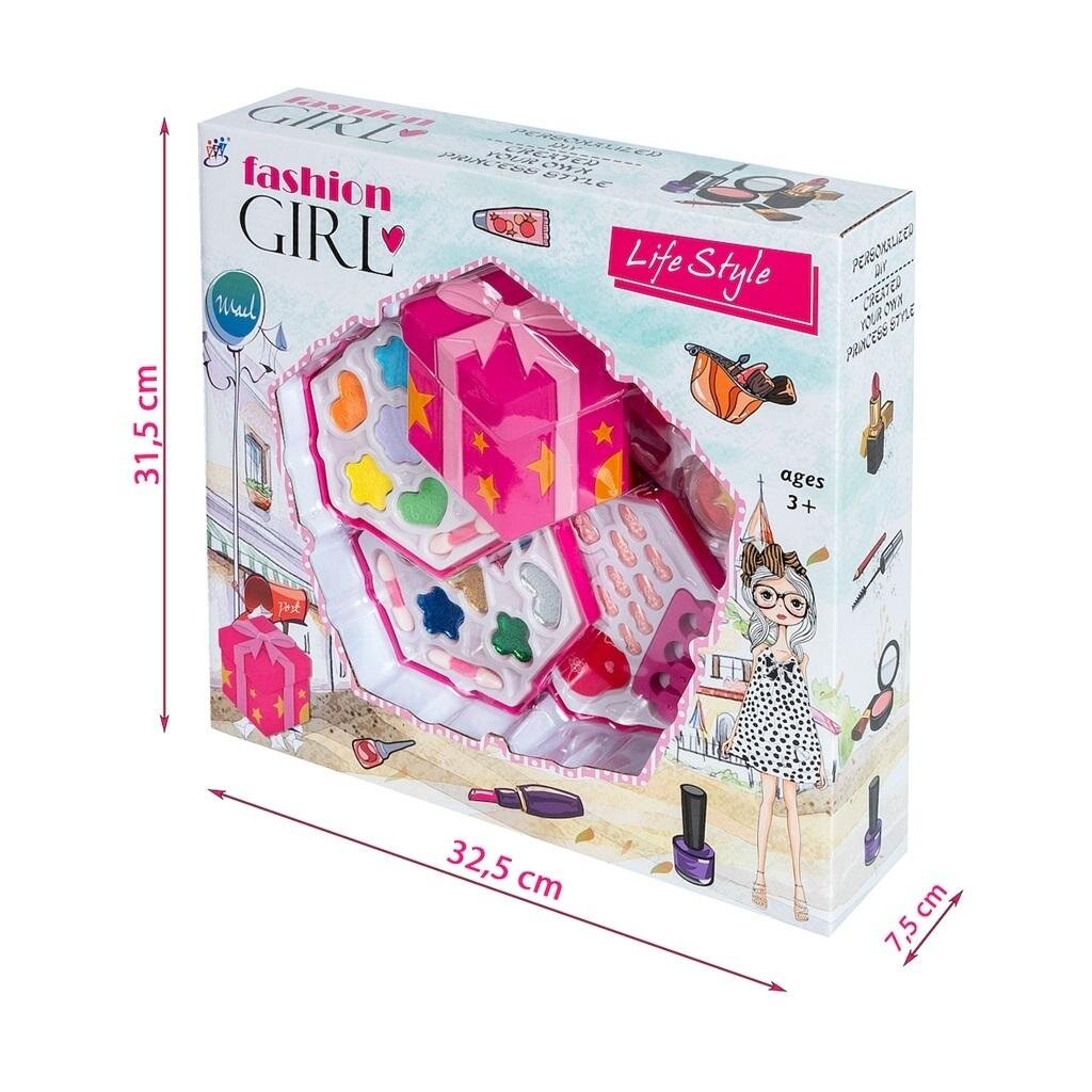 Zestaw kosmetyków do makijażu w szkatułceZestaw kosmetyków dla małej damy.W 3-poziomowym kuferku znajdziesz wszystko, czego potrzebuje mała dama: cienie do powiek, pomadkę, lakier do paznokci i inne elementyFantastyczny zestaw dla małej damy. Zabawka rozwija zdolności manualne i...