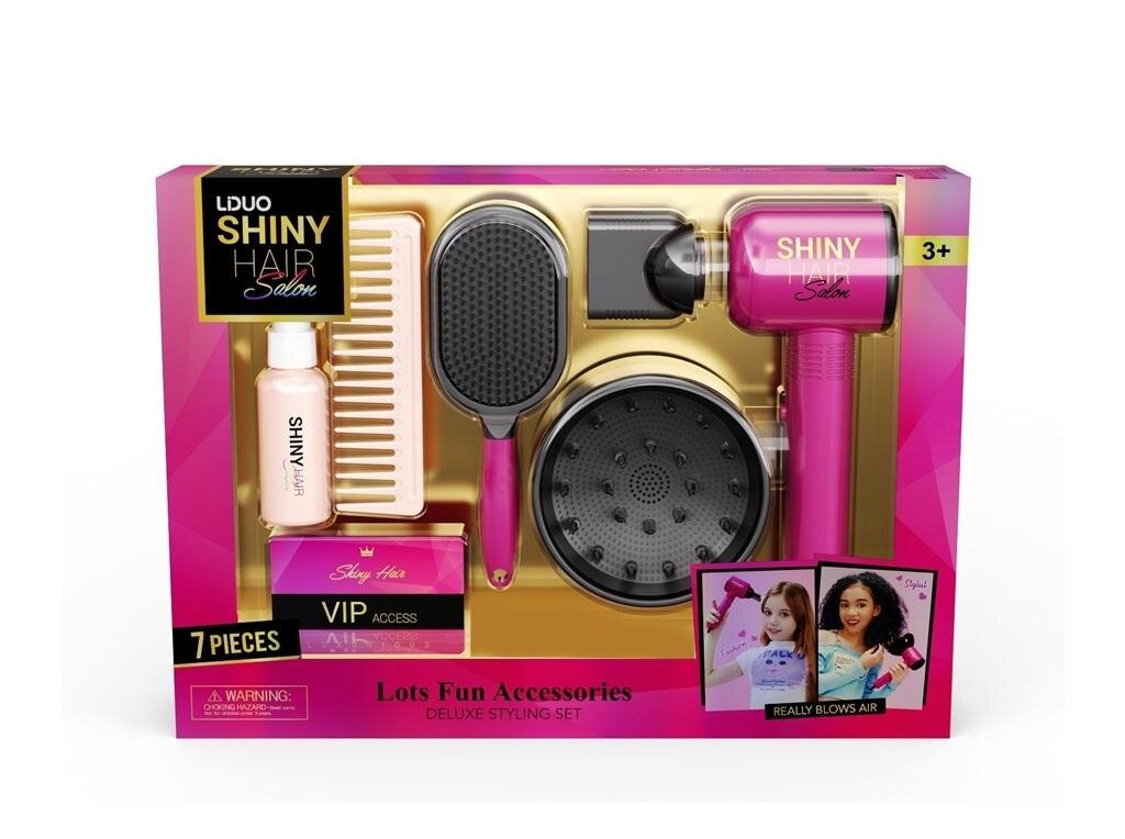 W zestawie: suszarka na baterie, 2 wymienne końcówki, szczotka, grzebień, szampon, karta vip, funkcje: łagodny nawiew powietrza, 3+ przeczytaj całość