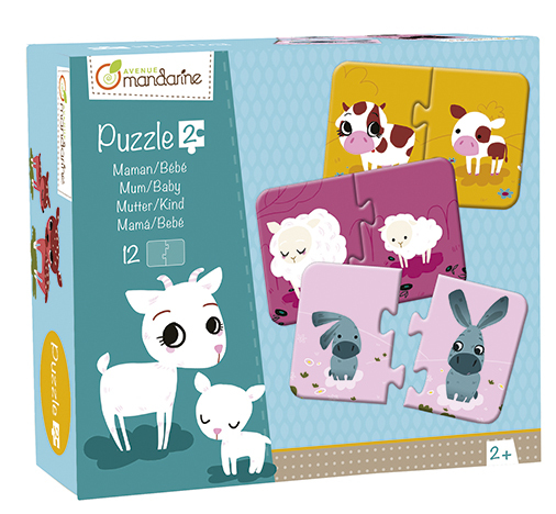 Puzzle mama i młode są przeznaczone dla najmłodszych dzieci. Ich zadaniem jest odnaleźć i połączyć zwierzęcą mamę z młodym, które do siebie należą. Puzzle zawierają urocze ilustracje zwierzątek autorstwa francuskiej ilustratorki Adolie Day.