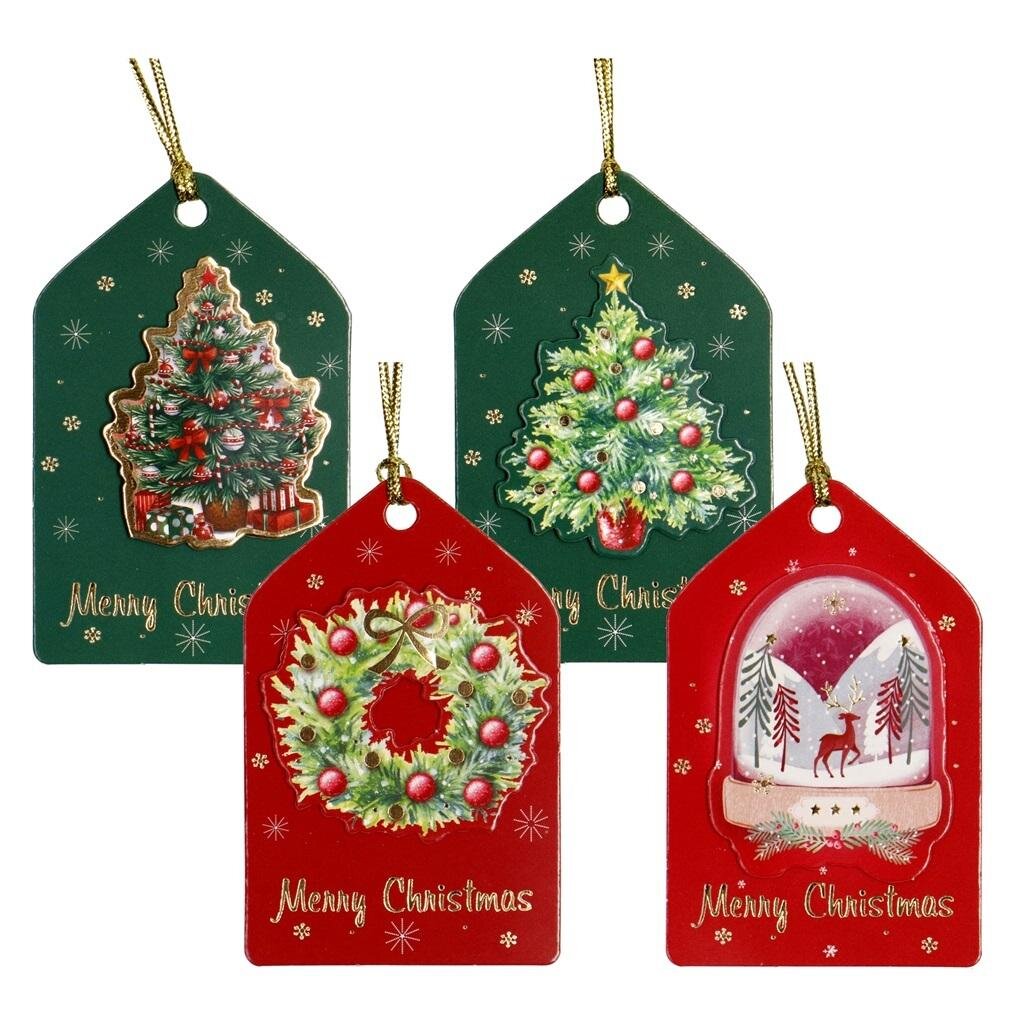 Tagi prezentowe 3D 8szt Choinka, Wianek