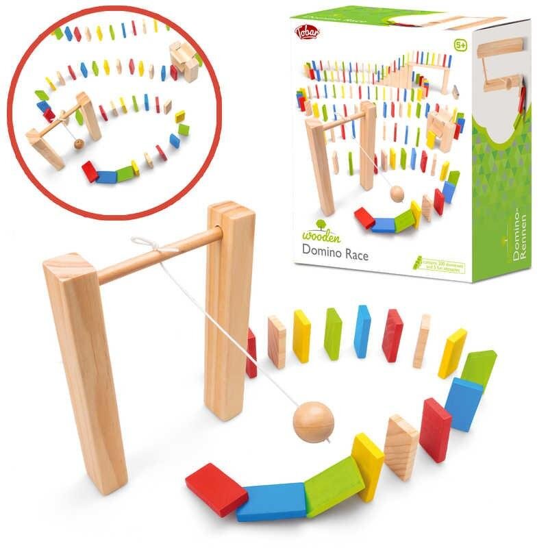To kompletny zestaw pozwalający budować tory z domina o przeróżnych kształtach, które później należy przewracać. Opakowanie, to zestaw 200 kostek domina, w przeróżnych kolorach, które wykonane zostały z drewna. W zestawie znajdują się także elementy urozmaicające budowanie toru, takie jak mostek,...