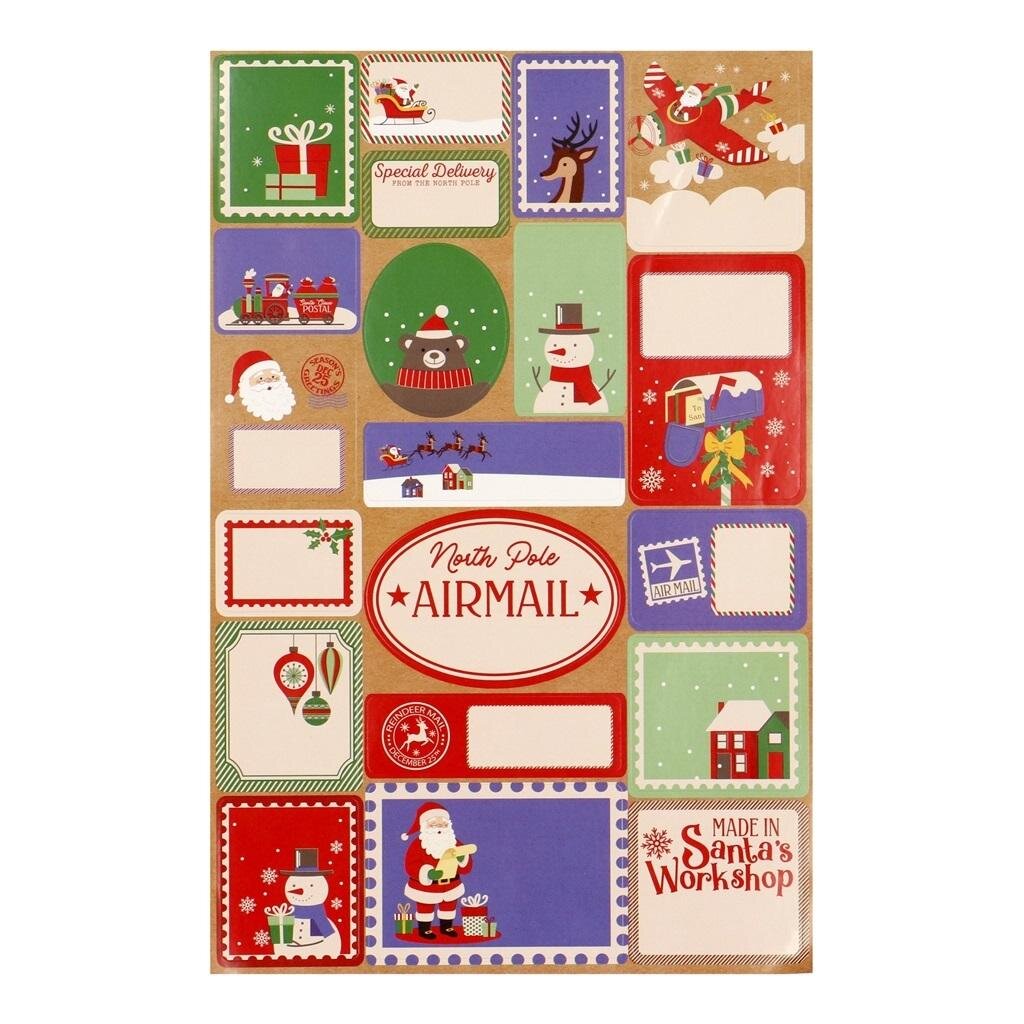 Zestaw naklejek świątecznych do podpisywania prezentów. Zabawne wzory dziecięce. 2 arkusze po 20 naklejek. przeczytaj całość