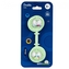 Stylowa grzechotka w pięknym, miętowym kolorze posiada aż dwie kule wypełnione kolorowymi koralikami, które przy potrząsaniu wydają wesoły dźwięk. Otaczają je miękkie obręcze ze zróżnicowanymi wypustkami, połączone ze sobą na wzór sztangi. Ten pomysłowy kształt ułatwi maluszkom chwytanie zabawki, a wypustki przyniosą ulgę obolałym ząbkowaniem dziąsełkom.
