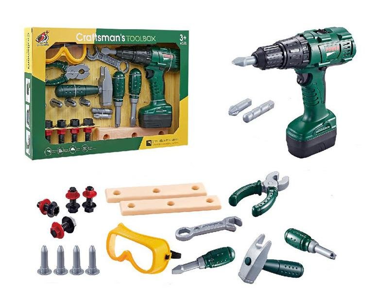Zestaw zawiera 27 elementów:- wiertarko-wkrętarka i dodatkowe wkręty- zestaw podkładek i śrubek- śrubokręty, młotek, obcęgi, klucz- gogleWkrętarka na baterie. przeczytaj całość