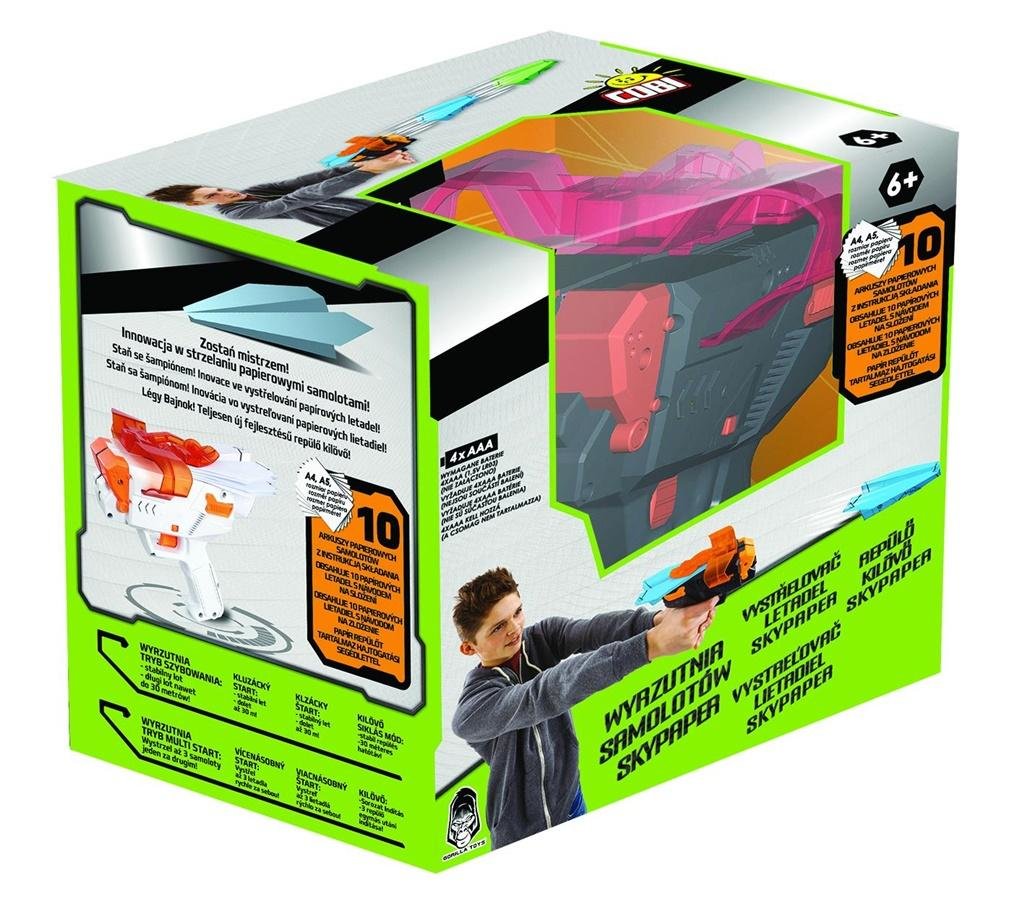 Zostań Mistrzem!Innowacja w strzelaniu papierowymi samolotami!Tryb szybowania: stabilny lot, długi lot nawet do 30mWymagane baterie 4 x AAA przeczytaj całość