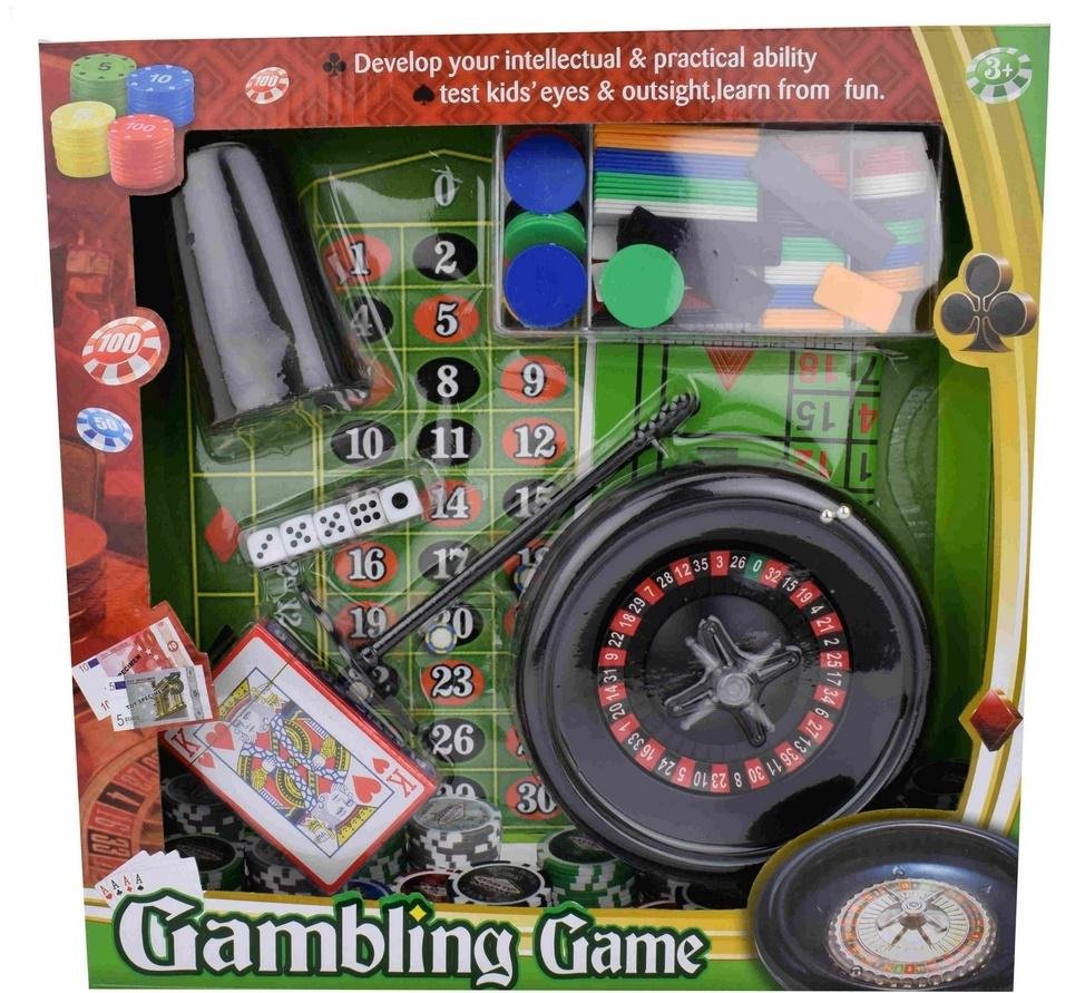 Doskonała rozrywka dla kilku osób. Zestaw składa się z gier losowych ale sporo zależy też od umiejętności graczy.Rekomendowana dla wieku 7+. Zawiera koło do ruletki, komplet żetonów, łapkę do zgarniania żetonów, kości do gry, kubek do kości i talię kart.Wielokolorowe opakowanie typu open box.... przeczytaj całość