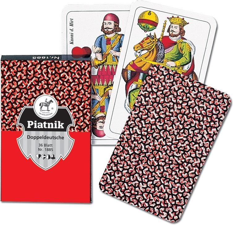 Najwyższej jakości karty do skata renomowanej firmy Ferd. Piatnik & Sohne. Bardzo popularne na Śląsku. Klasyczna talia 36 kart do skata (doppeldeutsche) z tradycyjnymi awersami i koszulkami typu "Blitz". Wyroby wiedeńskiej fabryki Ferd. Piatnik & Sohne od 1824 roku urzekają... przeczytaj całość