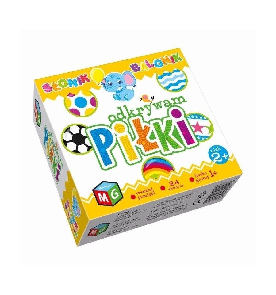ODKRYWAM PIŁKI" to przyjemna gra dla maluchów i ich rodziców.Proste i miłe dla oka ilustracje ułatwiają dziecku poznawanie piłek i odróżnianie ich od siebie. Gra ćwiczy pamięć oraz jest doskonałym treningiem koncentracji. Okrągły kształt elementów i gruba tektura sprawiają, że zabawka jest odpowiednia nawet dla małych dzieci. Zestaw zawiera: ilustrowane tabliczki - 24szt oraz instrukcję.
