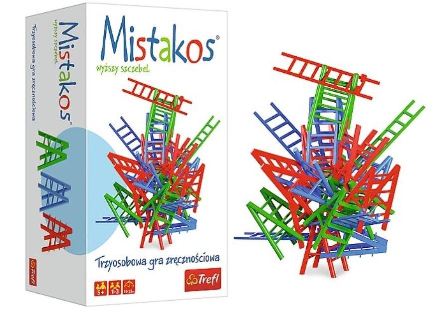Teraz znana i lubiana gra Mistakos w zupełnie nowej odsłonie! Wybierz drabinę w swoim kolorze i ustaw ja na poprzedniej tak, żeby nie spadła na stół. Uwaga, różne kształty drabin sprawiają, że nie jest to proste zadanie - wchodzisz na wyższy szczebel rozgrywki!
