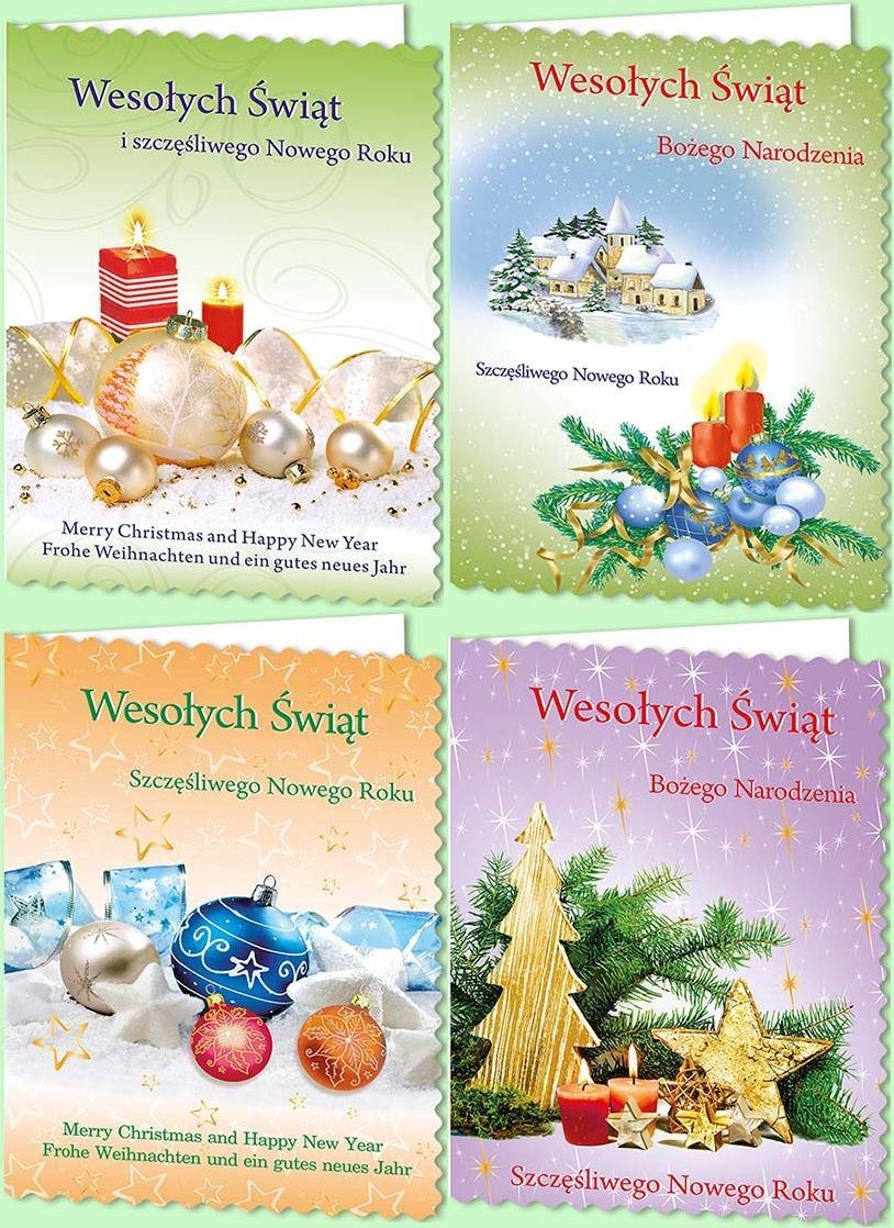 Karnet B6 ząbkowany na zewnątrz z kolorowym rewersem i życzeniami. Do karnetu dołączony jest opłatek wklejony wewnątrz w małej kopercie. Pakowany do folii wraz z kopertą w miksie seriami po 10 sztuk. przeczytaj całość