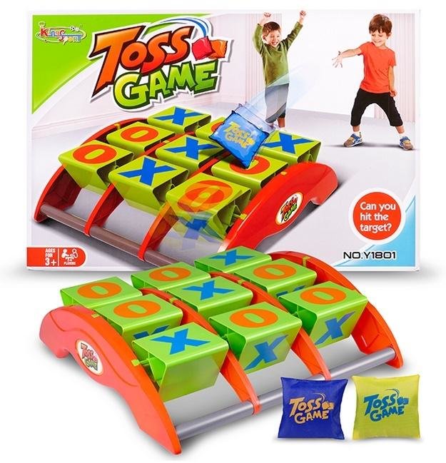 Świetna gra zręcznościowa dla całej rodziny.Rozgrywka może mieć miejsce w pokoju lub ogrodzie.Każdy gracz oprócz tego, że stawia swój znak O lub X, to musi go jeszcze odwrócić, poprzez rzut woreczkiem z grochem.....a to już nie jest takie proste!Zabawa wyrabia koordynację ruchową i celność.Zestaw...