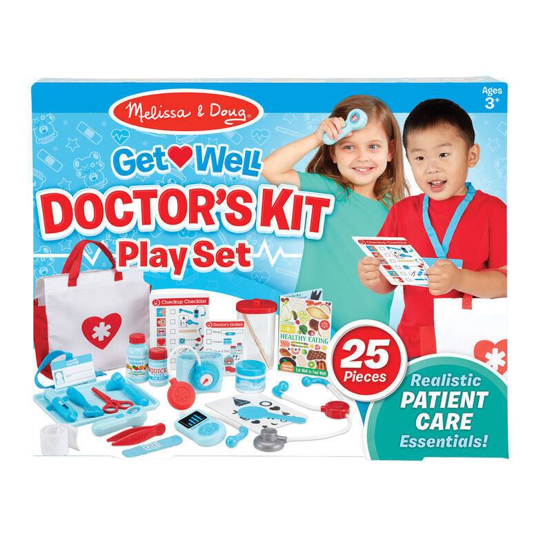 Twoje dziecko chciałoby otworzyć w zaciszu swojego pokoju swój własny gabinet lekarski? Z zestawem lekarza jest to możliwe! Ten zawierający 25 elementów komplet to idealny pomysł na prezent nie tylko dla przyszłego lekarza. Stetoskop, strzykawka, termometr, książeczka zdrowej diety- z ich pomocą młody lekarz czy lekarka wyleczy wszystkie zabawowe choroby.