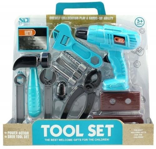 Zestaw plastikowych narzędzi z wiertarką dla małego majsterkowicza. przeczytaj całość